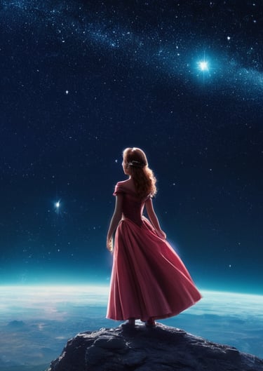 En el rincón más remoto del cosmos, donde los agujeros negros susurran secretos y las nebulosas pintan constelaciones de colores que nunca aparecen en un cielo terrestre, se encontraba el planeta Luminara. Era una esfera de cristal y luz, orbitando sobre la estrella más brillante del sistema llamado Aetherion. En su superficie, entre valles de cuarzo pulido y bosques de líquenes luminosos, vivía la princesa Aria, heredera de la Casa Celeste, guardiana de los antiguos ritos de sanación cósmica.